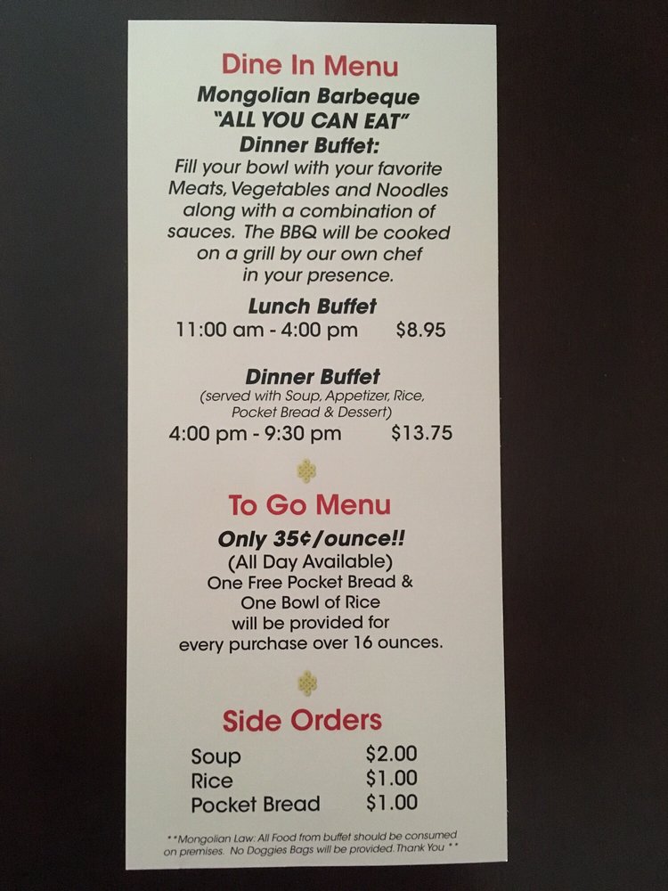 Golden Palace Mongolian BBQ Menu (Update 2025)